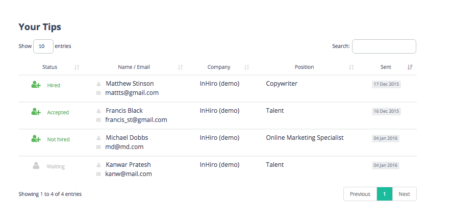 Tipsters always know what’s going on with their suggested tips. Have they been hired or declined? Transparency is key to have a successful referral hiring program in your company.